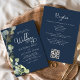 Invitation Marine bleu tout en un Eucalyptus QR Code Mariage
