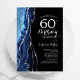 Bleu marine, noir et argent agate 60e anniversaire invitation de fête. Elégant design moderne avec aquarelle bleu royal agate marbre arrière - plan, fausse parties scintillant or et typographie script police. Carte invitation branchée parfaite pour une célébration anniversaire féminine élégante. Invitations Zazzle imprimées ou téléchargement instantané modèle imprimable numérique.