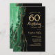 Émeraude vert, noir et or agate 60e anniversaire invitation de fête. Design moderne élégant avec aquarelle verte agate marbre arrière - plan, fausse parties scintillant or et typographie script. Carte invitation branchée parfaite pour une célébration anniversaire féminine élégante. Invitations Zazzle imprimées ou téléchargement instantané modèle imprimable numérique.