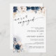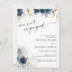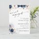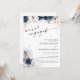 Rose bleu marine et Dusty Nous sommes engagés Invitation. Cette invitation à la douche de mariage élégante et élégante présente de magnifiques fleurs de Rose bleu marine et Dusty peintes à la main. Trouvez les articles correspondants dans la collection florale Rose bleu marine et Dusty.