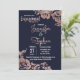 Invitation Marine Blue et Rose Gold Floral Engagement Party