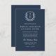 Invitation Marine Blue Floral Crest Monogramme Mariage Élégan