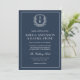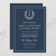 Invitation Marine Blue Floral Crest Monogramme Mariage Élégan