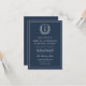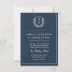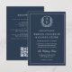 Invitation Marine Blue Floral Crest Monogramme Mariage QR Cod