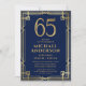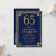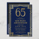 Cette fabuleuse invitation de 65ème anniversaire marine bleu et or masculin avec le numéro 65 en or avec des polices modernes entourée d'un cadre or art déco sur le devant et votre photo préférée de l'invité d'honneur sur le dos serait parfaite pour demander aux gens de se joindre à vous pour célébrer l'homme à l'anniversaire de votre vie de 65ème anniversaire. Traditionnel et classique, il est frais, moderne et contemporain. Pour voir vos invitations uniques, sélectionnez "Personnalisez ce modèle" et entrez vos informations et téléchargez une photo. C'est super facile !