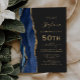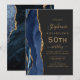 Invitation Marine Blue Gold Agate Dark 50th Birthday Party