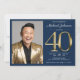 Invitation Marine Blue Gold Elegant Photo 40th Birthday Party