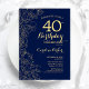 Invitation Marine Blue Gold Floral 40e fête d'anniversaire