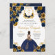 Navy Blue & Gold Floral Elegant Quinceanera Invitation Anniversaire