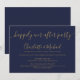 Doté de noms de style signature, cet élégant bleu marine et or heureux jamais après l'invitation de réception de mariage peut être personnalisée avec vos informations dans la lettrage chic. Conçu par Thisisnotme©
