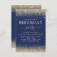 Parties scintillant Bleue Or et Marine Tout âge (13e, 16e, 18e, 21e, 30e, 40e, 50e, 60e) Invitation à la fête d'anniversaire pour adultes. C'est la parfaite (treize, seize, dix-huit, vingt un, trente, quarante, cinquante ou soixante) Amusante et branchée Invitation d'anniversaire pour une fête d'anniversaire moderne et élégante. Veuillez contacter le concepteur pour les articles customisés correspondants.