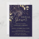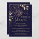 Invitation Marine Blue & Gold Peony Fête des mariées florale