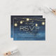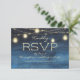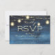 Bleu marine rustique et élégant avec or scintillant et lumières à cordes et lanternes carte RSVP mariage. Le texte, les polices et le libellé sont tous personnalisables. Contactez-nous pour obtenir de l'aide sur la personnalisation ou la mise en correspondance de produits.