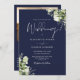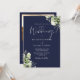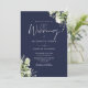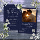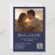 Cet élégant faire-part de mariage floral bleu marine peut être personnalisé avec vos informations en typographie chic avec votre photo spéciale, les détails du site mariage et votre code QR au verso. Conçu par Thisisnotme©
