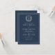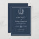 Invitation Marine Blue Leafy Crest Monogramme Mariage élégant