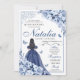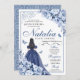 Elégante Dusty Blue & Navy Floral Quinceanera Invitation Anniversaire