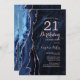 Invitation Marine Blue Rose Gold Agate 21e anniversaire