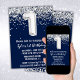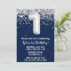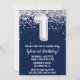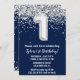 Marine bleu et argent 1er anniversaire invitation à la fête 1 anniversaire invitation à la fête avec parties scintillant et écriture de script moderne et ballons de papier amusant.