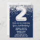 Marine bleu et argent 2e anniversaire invitation de fête âge 2 anniversaire invitation de fête avec parties scintillant et écriture de script moderne et des ballons de papier amusant.