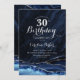 L'invitation de la fête du 30e anniversaire de la Marine bleu et argent agate. Elégant design moderne avec aquarelle bleu royal agate marbre arrière - plan, faux parties scintillant argent et typographie script police. Carte invitation branchée parfaite pour une célébration anniversaire féminine élégante. Invitations Zazzle imprimées ou téléchargement instantané modèle imprimable numérique.