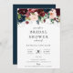 Aménagement floral bleu marine moderne et élégant, bordeaux et bleu marine, invitation à la douche nuptiale. La carte est dotée d'un style de design typographique moderne modèle et d'un support couleur bleu marine coordonné.