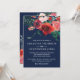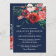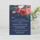 Vintage Moderne Marine Rouge Bleu Aquarelle Florale Invitation Le design présente une aquarelle peinte à la main, des flancs rouges vintages sur un arrière - plan bleu marine foncé.