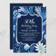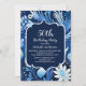 Invitation à la fête du 50e anniversaire avec des fleurs bleues poussiéreuses sur un arrière - plan bleu marine. Contactez-moi pour obtenir de l'aide sur vos personnalisations ou pour demander des produits Zazzle correspondants ou coordonnés supplémentaires pour votre célébration.