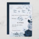 Invitation marine et bleu poussiéreux fleurs mariage botaniqu