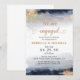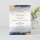 Marine et or Nous sommes engagés Invitation. Cette invitation à la douche de mariage élégante et élégante présente une magnifique aquarelle Ombre peinte à la main. Trouvez les objets correspondants dans la collection Marine et Gold.