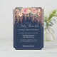 "Invitation au Baby shower floral rose rose rose de la Marine Fringe Rose." Belles fleurs d'aquarelle rose vif avec parties scintillant d'or et aquarelle feuillage sur une frange de parties scintillant d'or rose et bijoux pétillants. Un arrière - plan bleu marine peut être changé. Design créé par Audrey Jeanne Roberts, artiste et designer de renommée internationale. L'envers est un look parties scintillant partout avec du rose rose. Droit d'auteur .