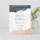 Faire-part de mariage géométrique dans la marine, l'or et le brouillard. Les détails sont encadrés dans une forme géométrique dorée avec un éclat d'aquarelle marine sur le dessus et de rougir sur le fond. Des éclats de poussière dorés ornent le dessus et le bas de la carte. Le dos de la carte est conçu avec des bandes dorées dans un motif en diagonale sur un arrière - plan bleu marine aquarelle. Vous pouvez ajouter tous les détails de votre mariage à la carte. Si vous avez besoin d'apporter d'autres modifications, vous pouvez cliquer sur le lien/bouton de personnaliser et modifier des choses comme la taille de police, le style de police, la couleur de police, etc.