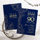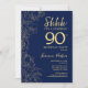 Marine Gold Surprise 90th Birthday Invitation. Le minimaliste design féminin moderne présente des accents botaniques et des caractères typographiques. Carte invitation florale simple parfaite pour une célébration anniversaire surprise femme élégante.