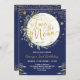 Moon & Stars thème 2ème anniversaire invitation avec élégante et délicate aquarelle verdure et de la lune rêvée et des éléments étoiles en bleu marine et or