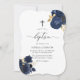 Invitation Marine Indigo Blue Floral Gold Leaf Baptême