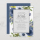 Elégant bleu marine, jaune et blanc aquarelle floral avec feuilles verts sur blanc invitation de fête de 80e anniversaire. Le lettrage est une belle police de script de calligraphie. Contactez-nous pour obtenir de l'aide sur la personnalisation ou pour demander des produits correspondants.