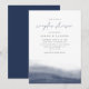 L'élégante invitation wedding shower de couples côtiers présente un dégradé bleu marine le long du fond avec une courbe gracieuse qui évoque le reflet et le flux de la mer. Vos détails de douche de couple apparaissent en lettrage classique minimaliste avec accents manuscrits.