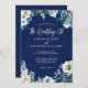 Invitation Marine moderne Bleu Blanc Floral Mariage d'hiver