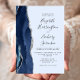 Le bord gauche de cette élégante faire-part de mariage moderne est orné d'une bordure en aquarelle bleu marine ornée d'une parties scintillant en faux argent. Le texte personnalisable combine écriture manuscrite et polices de caractères en bleu marine sur un arrière - plan bleu pâle. L'envers est assorti d'un design d'agate bleu marine et argent.