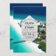 Cette invitation marine moderne bleu est parfaite pour une croisière ou un fiançailles sur la plage, mariage après la fête, la retraite, la remise des diplômes ou tout événement heureux. Le design simple présente un paysage marin magnifique, des vagues, des animaux de mer et des récifs colorés.