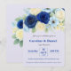 Célébrez l'amour avec cette élégante pièce à mariages floraux bleu et ivoire, qui présente des roses d'aquarelle, de la verdure douce et des accents navals intemporels. Un choix parfait pour un séjour balnéaire, un jardin ou un événement romantique. Personnalisez-vous avec vos noms, dates et lieux pour correspondre à votre style de célébration unique.