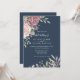 Un design d'aquarelle élégant de grands roses dans les tons rose clair sur un arrière - plan bleu marine. Le dos de la carte a un petit arrangement floral au centre. Vous pouvez ajouter des détails dans le menu "modifier la conception". Cette invitation fait partie d'une belle suite de mariage assortie qui peut être entièrement personnalisée.