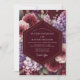 Rich maroon roses and vibrant purple hydrangeas create a lush, romantic backdrop. This design evokes a feeling of vintage charm and deep, passionate love. Delicate lilac blossoms add a touch of ethereal beauty.