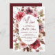 Maroon Fall in Love Blush Burgundy Bridal Shower Invitation. Invitation à la douche nuptiale rustique et élégante avec marron aquarelle peint à la main, fleurs rouge bordeaux, marron et rose rousse et cadre en feuilles de automne avec couleur bordeaux dans le dos. Contactez-nous par conversation si vous avez besoin de personnalisation ou de correspondances.