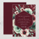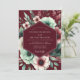 Experience a dramatic floral tableau with this moody and romantic design. Luminous anemones in soft mint green, pale blush, and cream appear to glow against a deep maroon backdrop. Artfully arranged with delicate greenery, this composition evokes the elegance of a classical still-life painting. The rich color palette creates a sophisticated and unforgettable impression for your special day.