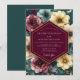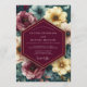 Evoke a sense of moody romance with this elegant and dramatic botanical design. A lush arrangement of painterly anemones and peonies in deep burgundy, teal, and pale yellow hues pop against a dark background. This artistic and opulent floral display is perfect for a sophisticated autumn or winter union.
