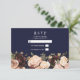 Invitation Maroon rose floral vert marine bleu mariage RSVP