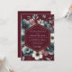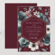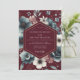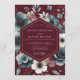 This elegant design features a dramatic and moody floral display. A deep maroon backdrop is adorned with painterly anemones in shades of dusty slate blue, soft blush, and ivory. The chiaroscuro effect creates a romantic, opulent atmosphere perfect for a sophisticated autumn or winter union. This artistic composition evokes the beauty of a classical still life painting.