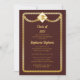 Un bouchon de graduation en or et un cadre serpentin arrondi en or et marron design d'invitation à la fête de graduation qui peut être personnalisée pour les diplômes du secondaire, collège, université ou professionnel. Conception composite par Holiday Hearts Designs (droits réservés).