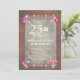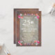 Carton d'invitation pour un 25e anniversaire de mariage de couleur marron rustique avec des fleurs roses et violettes et un aspect texturé.