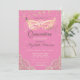 Invitation Mascarade, dentelle, Diamants Rose Quinceañera